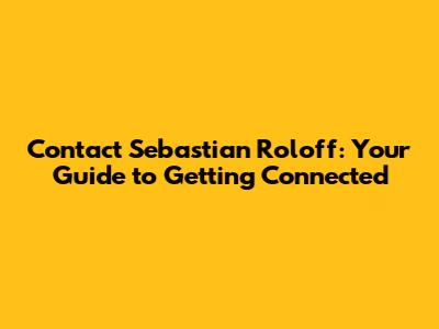 Contact Sebastian Roloff: Get In Touch & Connect