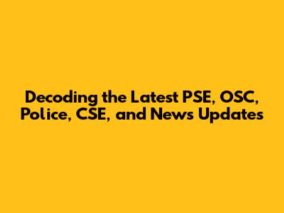 Decoding The Latest PSE, OSC, Police, CSE, And News Updates