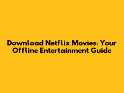 Download Netflix Movies: Your Offline Entertainment Guide
