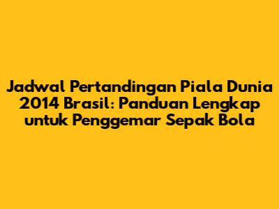 Semoga artikel ini bisa mengingatkan kita kembali akan keseruan Piala Dunia 2014, ya! Kalau ada pertanyaan atau mau berbagi kenangan tentang turnamen ini, jangan ragu untuk tulis di kolom komentar. Sampai jumpa di artikel-artikel menarik lainnya! Jangan lupa untuk terus dukung tim kesayanganmu dan tetap semangat dalam menikmati keindahan sepak bola. Ciao! #PialaDunia2014 #Brasil #SepakBola #JadwalPertandingan #Nostalgia