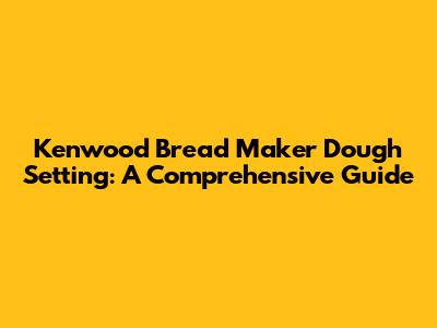Kenwood Bread Maker: Mastering The Dough Setting