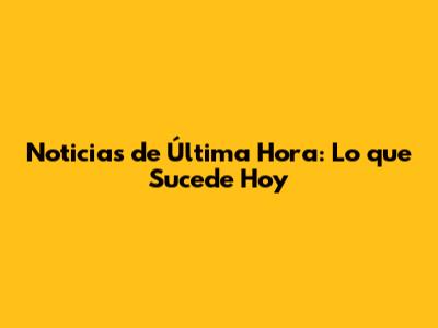 Noticias De Última Hora: Lo Que Sucede Hoy