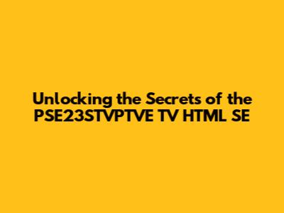 Unlocking The Secrets Of The PSE23STVPTVE TV HTML SE