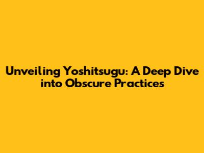 Unveiling Yoshitsugu: A Deep Dive Into Obscure Practices